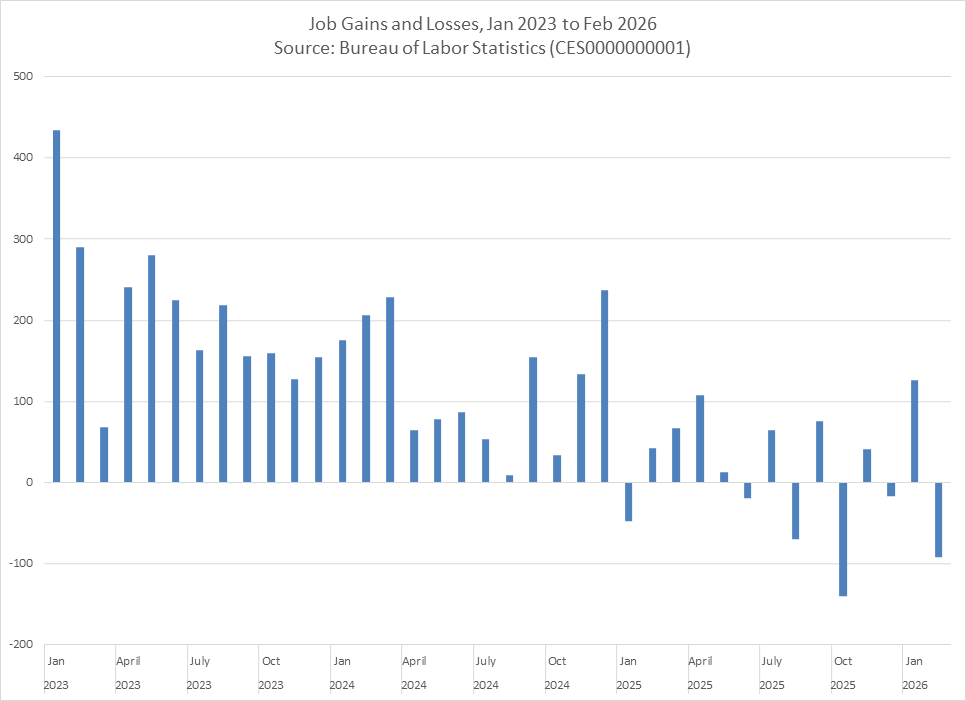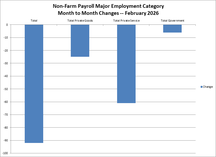 The BLS reported that businesses had a net loss of -92,000 jobs. It was the second-largest job loss since COVID in April of 2020. No significant industry had job growth except finance. Healthcare and hospitality were down for the first time since 2020, while manufacturing and business services also shed jobs. The household data showed an even larger drop, with -192,000 jobs lost between January and February.