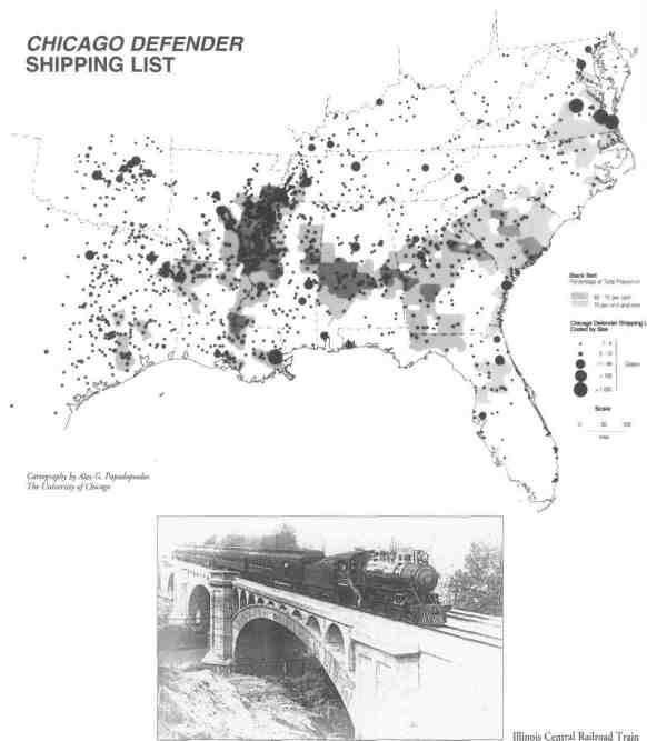 The Chicago Defender (Chicago Defender, Abbott) and the Black press had an enormous impact on migration. The Defender ran job ads, ads from recruiting agencies and editorials encouraging migration. We will never know how large the impact was, but it was substantial. The paper, spread by Pullman porters, had a Chicago circulation of 50,000 in the North and 100,000 in the South. Since not everyone could read, the estimated real circulation was probably five to ten times as much (500,000).